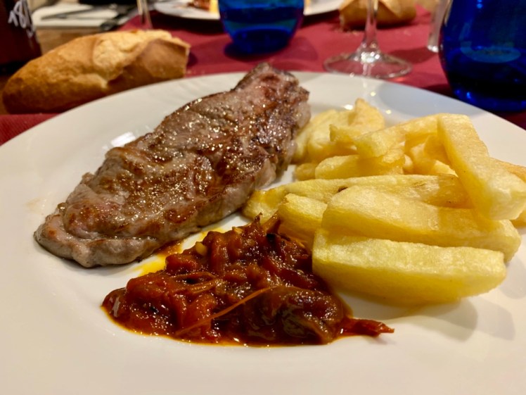 Riposo fino all’ora di cena, mentre Gianfranco visita la cattedrale e mette il timbro sulle credenziali. Ceniamo vicino all’albergo in un bel ristorante con cucina locale. Sono riuscita a trovare qualcosa che non fosse “peperoni e patate”. Mi sono concessa un dolcetto basco “consolatorio”, ne avevo bisogno!