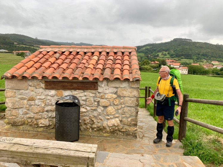 Passato il borgo di Oreña, si inizia a salire verso una collina che ha sulla sommità la bella chiesa di San Pedro. Qui troviamo un gentile volontario che ci offre generi di ristoro e il timbro sulla credenziale.