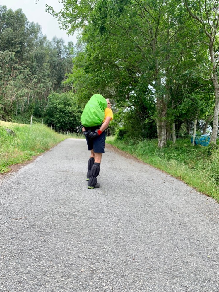 Poco dopo, incontriamo una piccolissima ermita con solo tre pareti. La nostra guida scrive che all’interno di tale chiesetta avremmo dovuto vedere la scritta “Pellegrino, ringrazia per 12 cose prima di andare a Santiago”. Abbiamo fatto il giro della chiesetta, ispezionandola per bene, ma della scritta, niente. Con grande delusione, ce ne torniamo sui nostri passi e salutiamo la chiesetta.