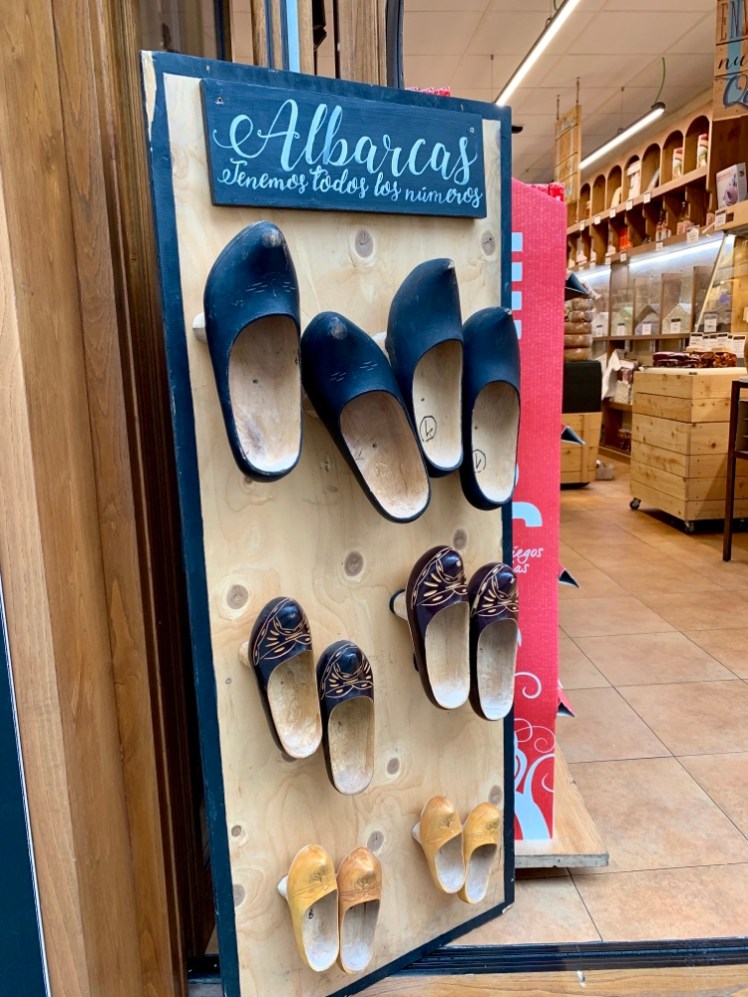 In un negozio di artigianato, noto per la prima volta da quando in Cantabria, le Albarcas, tipici zoccoli fatti in sol pezzo di legno, usati in passato dai contadini cantabrici.