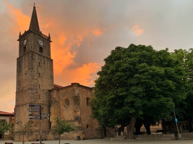 Veniamo ripagati da una bellissima alba che sorge da dietro il campanile della chiesa di Comillas.