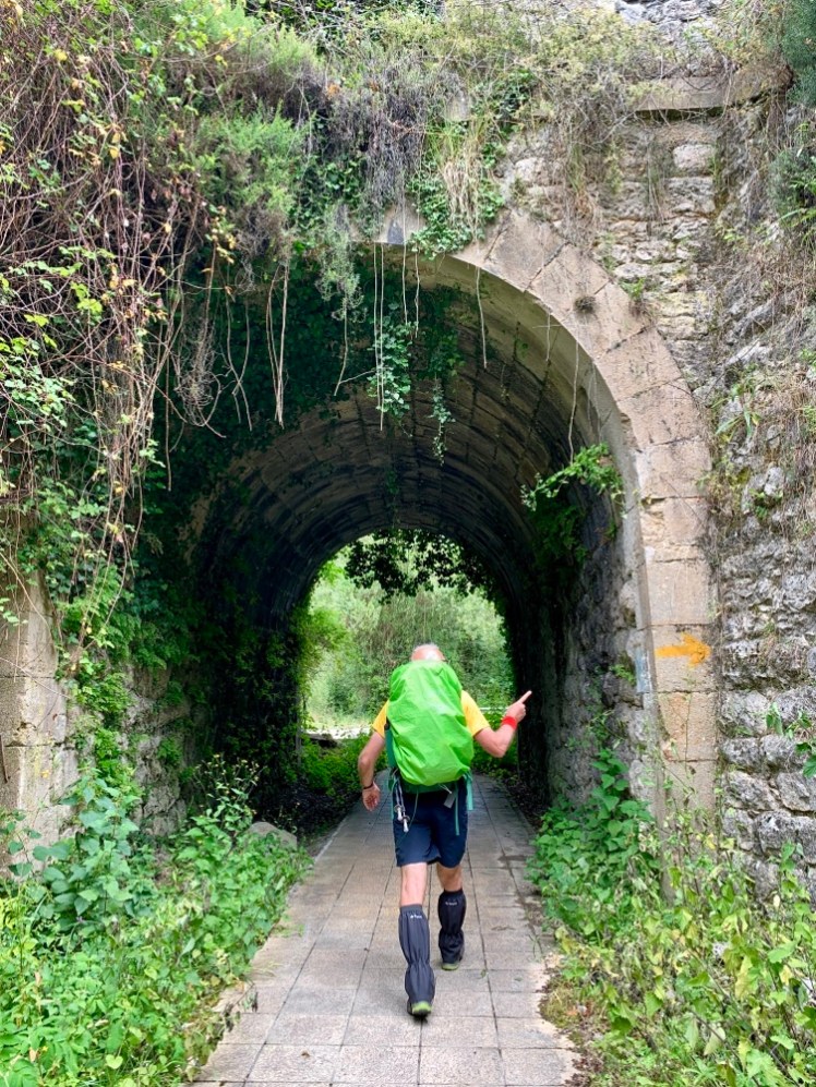 Ci immettiamo su una strada asfaltata con traffico quasi assente. Si susseguono con regolarità i cartelli che avvisano gli automobilisti della presenza dei pellegrini.