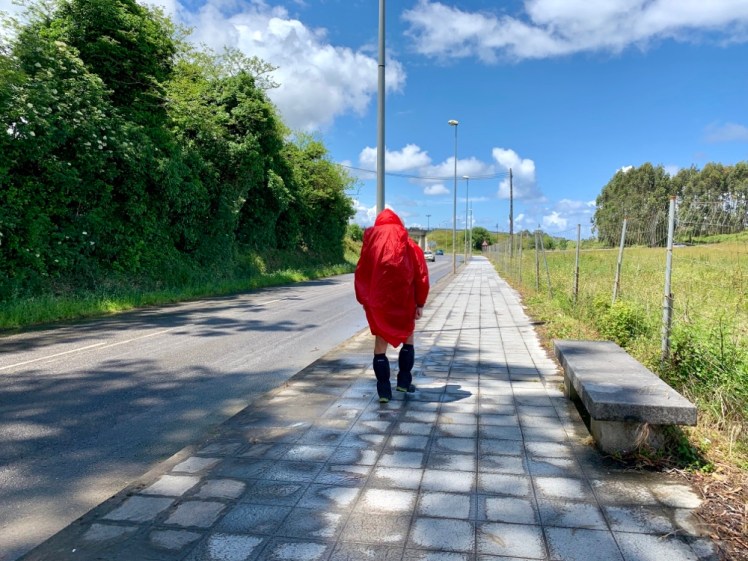 La strada continua con assenza di traffico e nonostante questo, ha la banchina sicura per i pellegrini, con anche l’insegna della conchiglia impressa sull’asfalto.