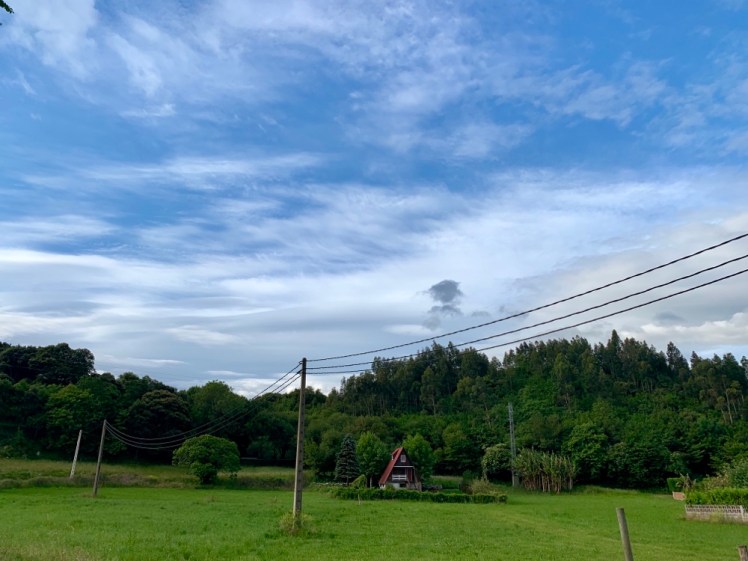 Partiamo presto, oggi tappa lunga. Il cielo fa ben sperare. Partiamo senza ghette, ma le teniamo a portata di mano, così come la mantella e l’ombrello.