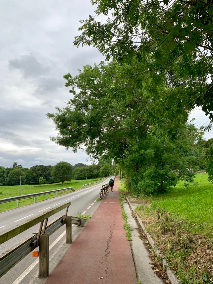 Usciamo dal paese e subito lasciamo la strada statale per immetterci sulla Senda costiera E9 che costeggia l’oceano, in un continuo lieve saliscendi, tra pascoli alla nostra sinistra e viste mozzafiato sull’oceano a destra. È un paesaggio incantevole.