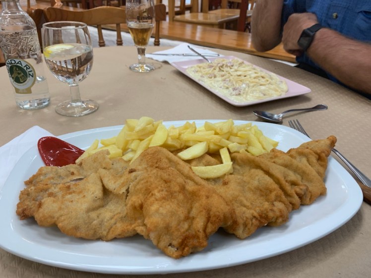 Ceniamo nell’unico ristorante aperto prima delle 8:30. Sigh! Ho scelto dei crostini con l’acciuga e quella che sembrava una pietanza gustosa: la milanese. Mi hanno portato un “cosa” informe, dalle dimensioni inimmaginabili. Ne ho mangiato un terzo ed ero più che sazia. Ho pensato che avrei volentieri insegnato gratuitamente al cuoco a fare una perfetta milanese!