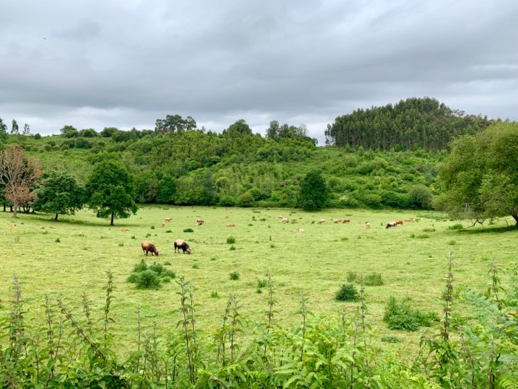 Continuiamo il cammino tra bellissimi pascoli, su cui brucano centinaia di mucche, e piccoli villaggi con antiche case e stupendi horreos, tuttora in uso.