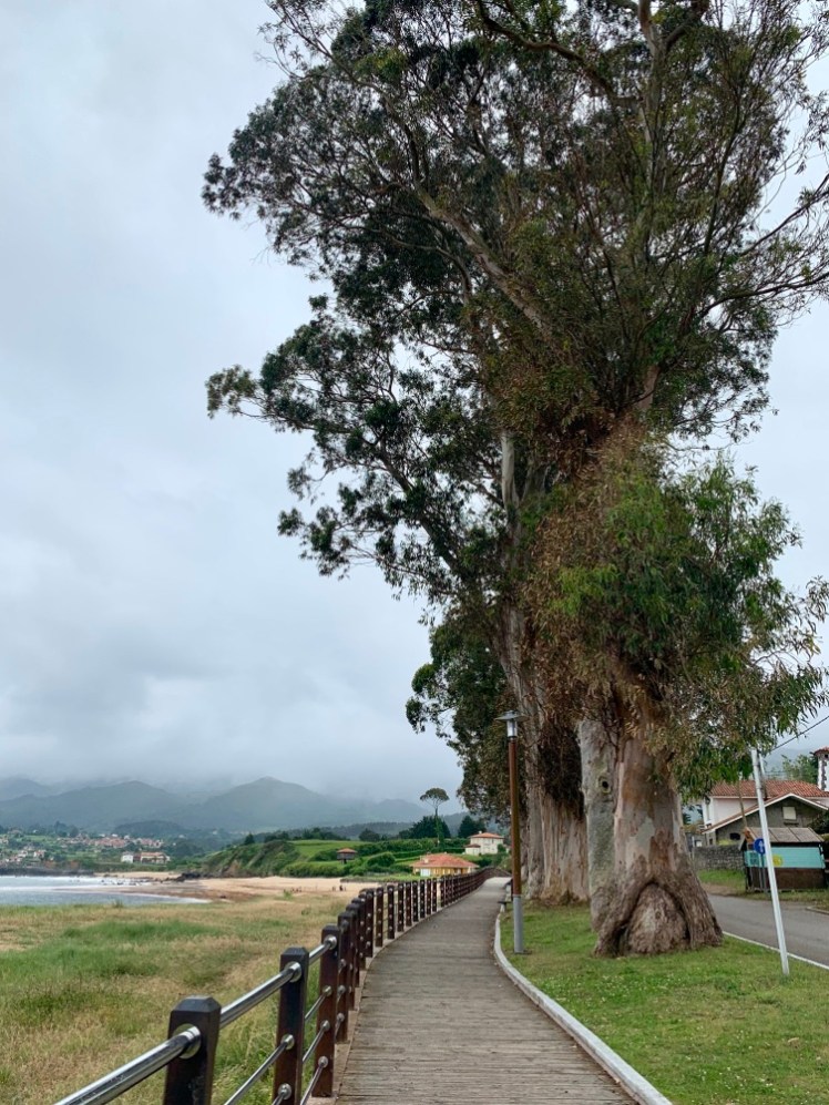 Passata la spiaggia di La Espasa, ci immettiamo nuovamente sulla N-632 fino alla meta di oggi, La Isla. Il Cammino si svolge tutto su un bel marciapiedi su cui affacciamo belle ville protette da alte siepi potate perfettamente.