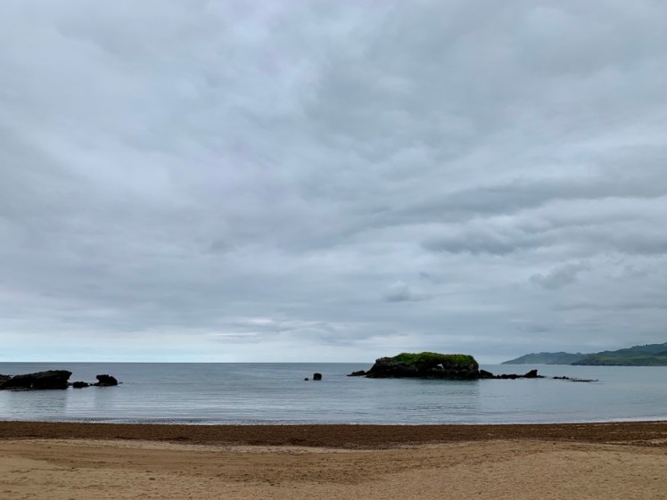 Durante tutta la giornata, dense e minacciose nubi hanno stazionato sul massiccio della Cordigliera Cantabrica, ma senza mai spostarsi da lì. Sull’oceano c’è sempre stato il sole e noi abbiamo camminato senza pioggia.