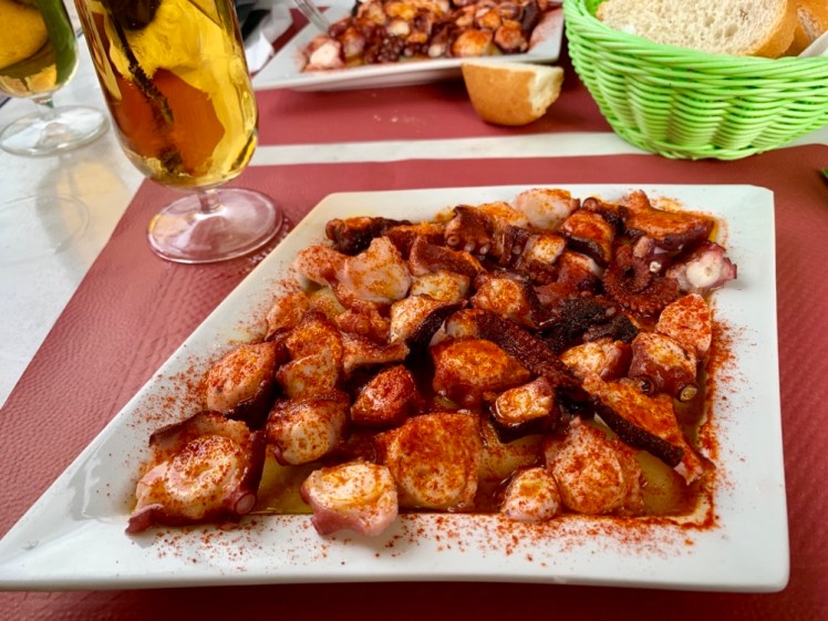 Questa sera decido di cenare col polpo alla gallega (polpo lesso con patate e paprika). È stata una scelta felice.