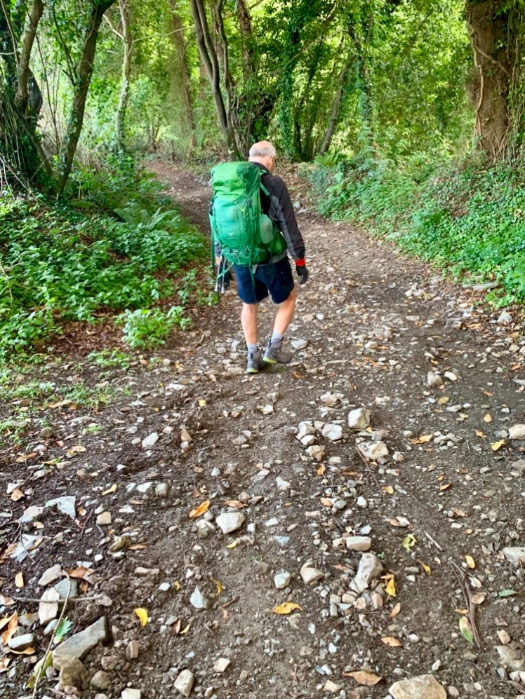 È nuvoloso, ma ci sono ampi sprazzi di sereno. Parto con lo zaino coperto, non corro il rischio di bagnarlo.