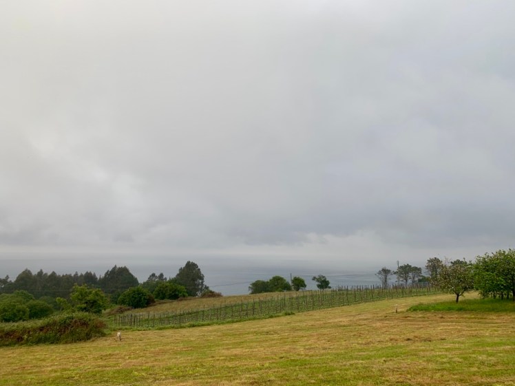 Proseguiamo poi con dolci saliscendi su lunghi rettilinei, parelleli all’autostrada. Spesso abbiamo begli scorci sulla scogliera frastagliata dell’Asturia.