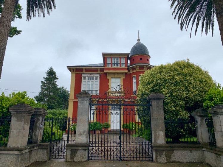 Riprendiamo il cammino sotto una pioggia finissima. Nel paese, incontriamo tante belle ville in stile Indianos.