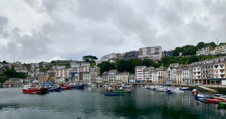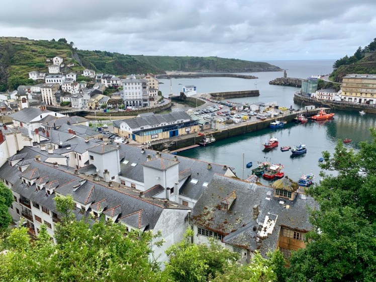Iniziamo a scendere verso Luarca su strada in forte pendenza e quando siamo ormai vicini al mare, si apre il panorama sul porticciolo e le due montagne su cui cresce la cittadina.