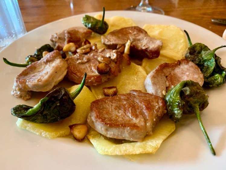 Scegliamo l’unico ristorante che apre alle 19. É stata un’ottima scelta, il cibo era buono e ben cucinato: Cozze al vapore, filetto di maiale con patate e gli immancabili peperoni, gelato.