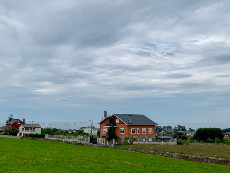 Ci mettiamo in cammino, prendendo subito la N-634. Il cielo è quasi sereno e si cammina bene. Il traffico è inesistente.