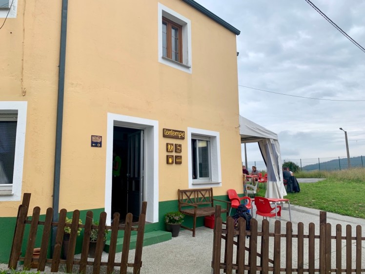 Mentre siamo a Vilamarin, smette di piovere. Arriviamo, dopo 18 km di cammino, ad un punto di ristoro eccellente, dove troviamo diversi pellegrini che si riposano.