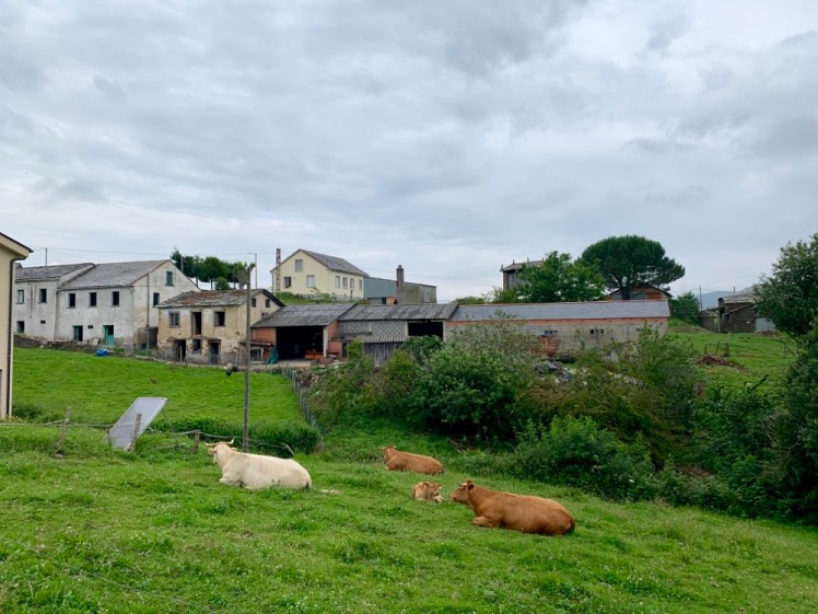 Arriviamo nel paesino rurale de La Calzada. Le mucche riposano, ruminando, di fianco alle stalle.