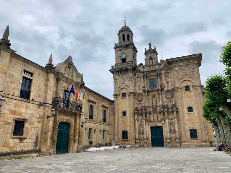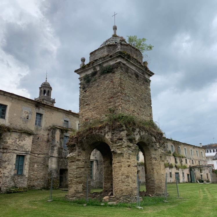Attraversiamo il paese, passando davanti al bellissimo monastero di San Salvador, purtroppo in rovina (non so se sia in programma il restauro), fondato nel X secolo. Ha una chiesa barocca, terminata nel 1732, la cui facciata servì da prova per la costruzione della Cattedrale di Santiago de Compostela.
