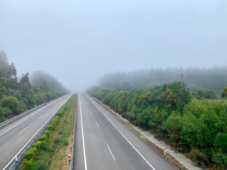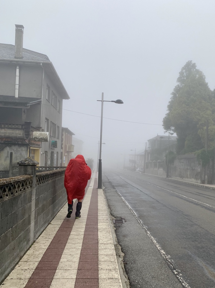 La tappa inizia con nebbia e pioggerellina resa fastidiosa dal vento che si è alzato stanotte intorno alle quattro e che ancora non è calato.