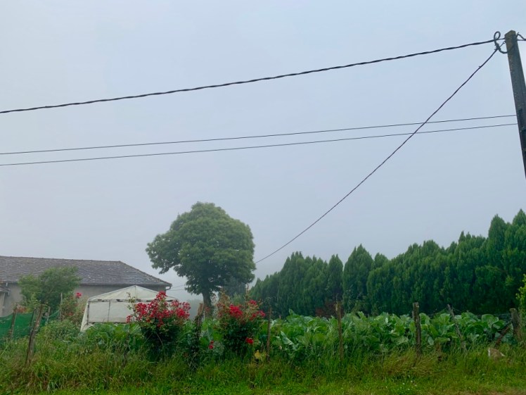 Gli orti coltivati col cavolo gallego sono ovunque, coperti dalla nebbia. Li osservo e subito penso a quanta felicità daranno alla mia salute nei pochi giorni che restano alla fine di questo cammino.