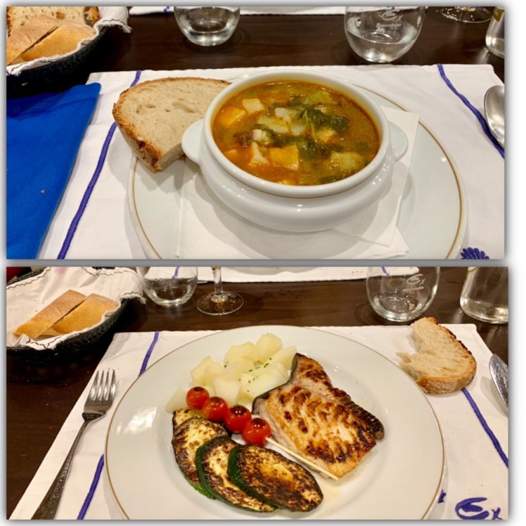 A pranzo, il caldo gallego e un pesce ai ferri con zucchine (incredibile! Avevo iniziato a pensare che qui le zucchine non crescessero).