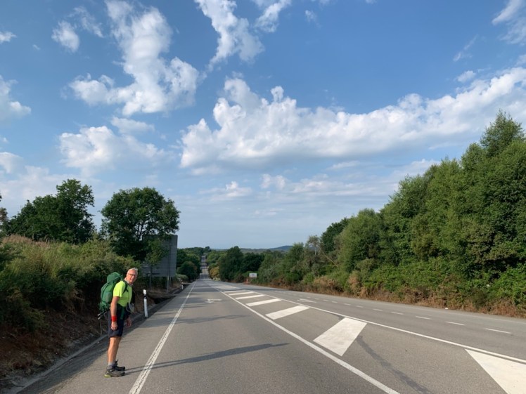 Dopo una ventina di chilometri dalla partenza, arriviamo ad un grande doppio incrocio con varie arterie stradali che si incontrano in due rotatorie. Subito dopo possiamo finalmente fare una pausa caffè. Siamo a Baamonde, un piccolo paese che, grazie ai tanti pellegrini di passaggio e alle varie strade che qui si incrociano, ha numerosi bar e ristoranti.