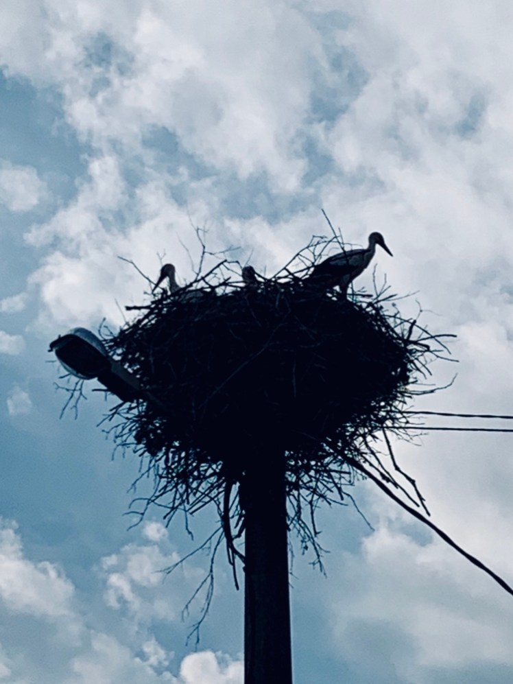 Intorno alle 10:30, il cielo si oscura e sentiamo delle gocce di pioggia. Proseguiamo senza copertura e, osservando il cielo per capire se le nuvole ci saranno amiche, noto un bel nido di aironi.