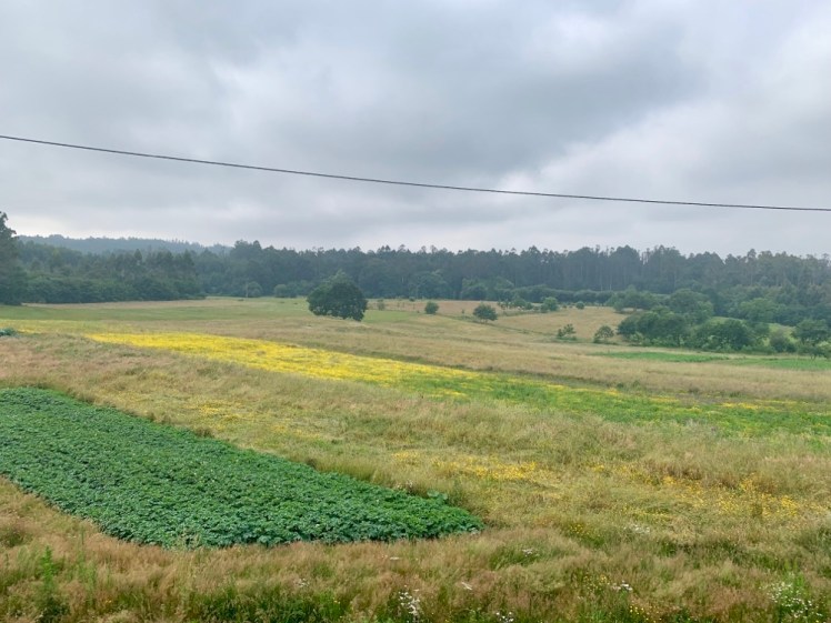 Lasciamo il bosco ed entriamo in una zona urbanizzata. Ai lati della strada, si susseguono villette, orti e qualche horreo.