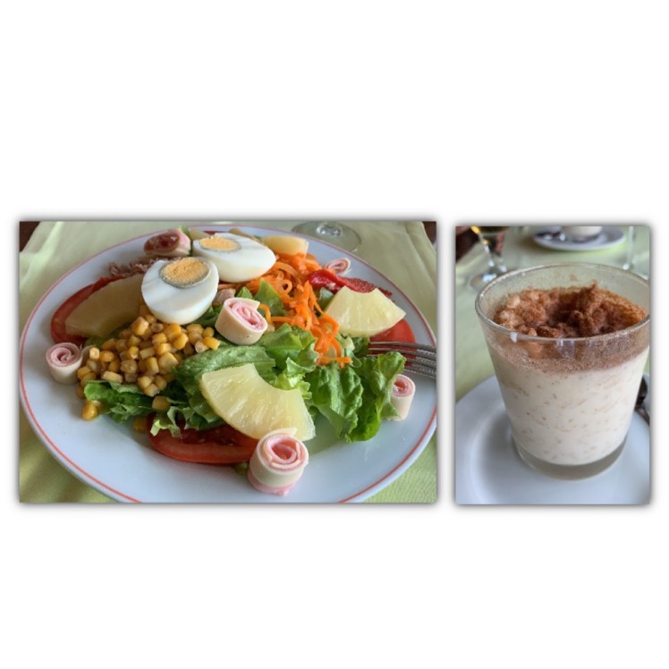 E per cena, un’insalata “pallida”, come ormai la definisco, con tanto di ananas. A seguire, un dolcetto tipico: arroz con leche.